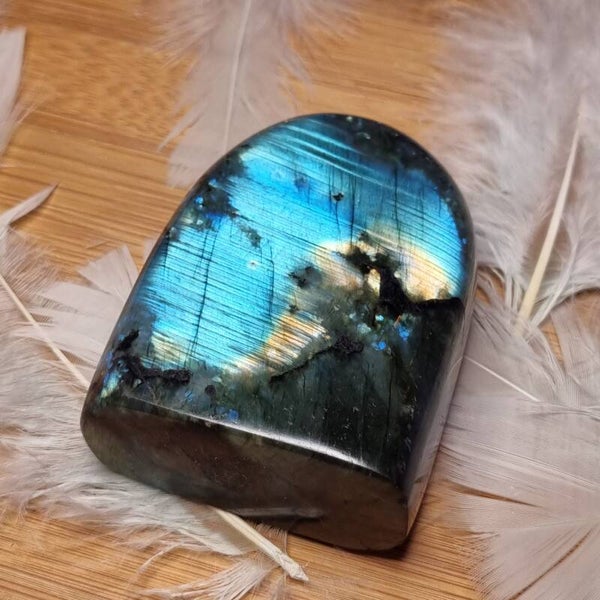 Labradoriet wordt vaak de steen van transformatie genoemd. Hij staat bekend om zijn beschermende energie en helpt negatieve invloeden buiten te houden, waardoor je aura wordt versterkt. Deze steen: