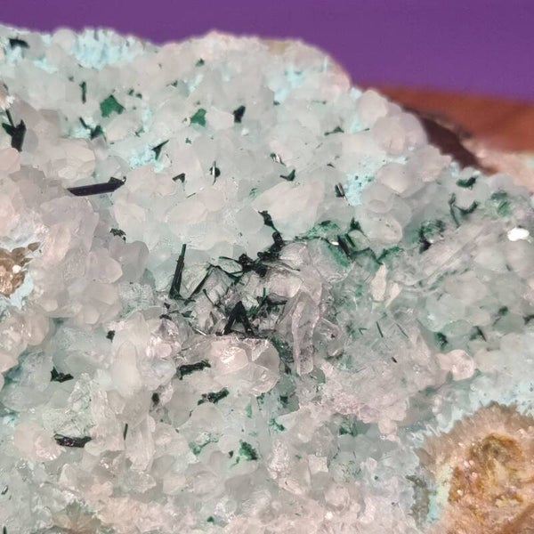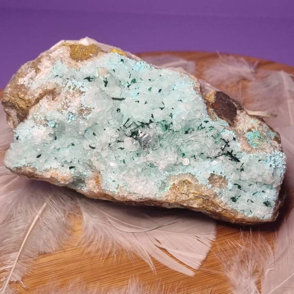 Dit zeldzame en krachtig energetische stuk is een harmonie van vier bijzondere mineralen, samengebracht in één natuurlijk meesterwerk. Elk kristal draagt zijn eigen verhaal, zijn eigen energie – en samen vormen ze een portaal naar transformatie, balans en innerlijke wijsheid.