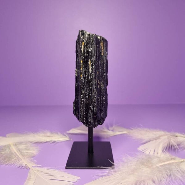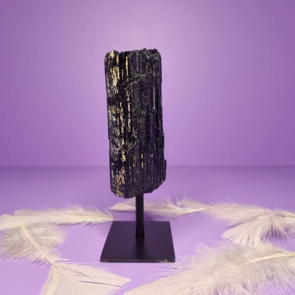 Zwarte Toermalijn op Standaard – 🛡️ Bescherming en Kracht uit de Natuur