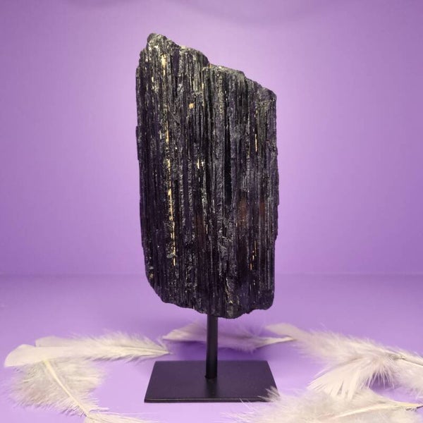 Zwarte Toermalijn op Standaard – 🛡️ Bescherming en Kracht uit de Natuur