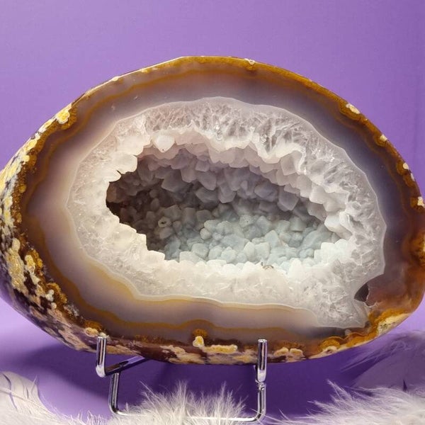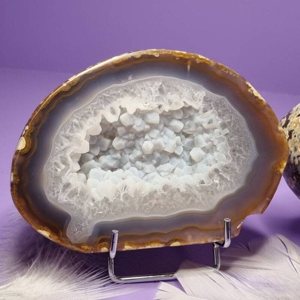 Ontdek de betovering van deze prachtige agaat geode met een kern van schitterend kwarts π.