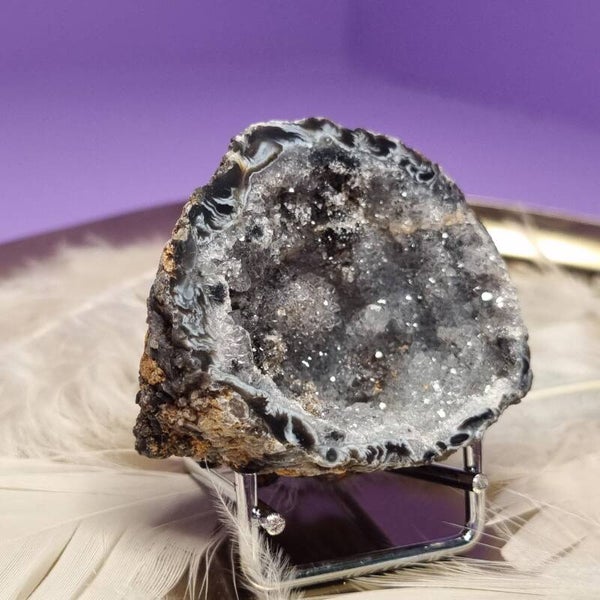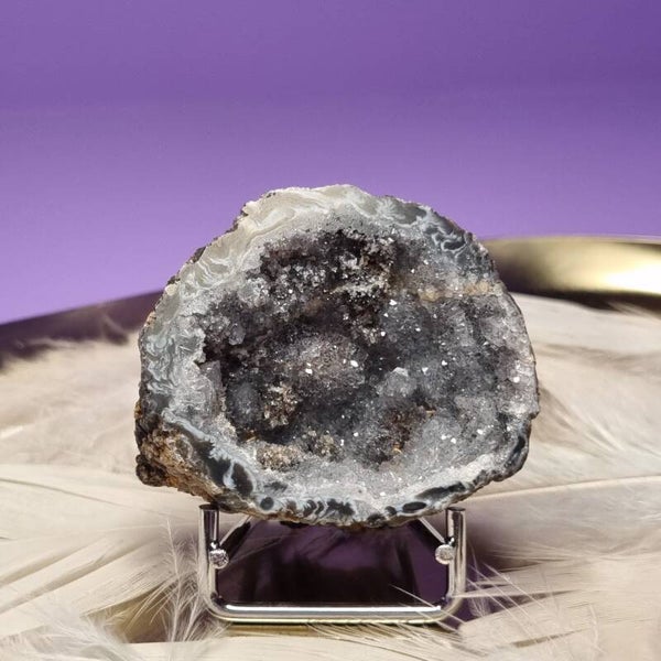 Van buiten oogt ze ruw en bescheiden, maar wie haar opent, ontdekt een wereld vol glans π. De agaat geode is ontstaan in vulkanisch gesteente, waar mineralen zich miljoenen jaren lang in lagen hebben gevormd, met een hart van fonkelende kwartskristallen. Elke laag vertelt een verhaal over tijd, vuur en stilte.