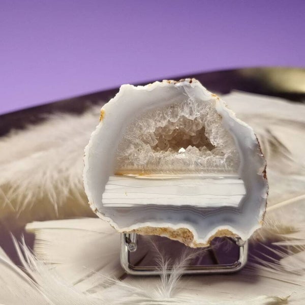 Van buiten oogt ze ruw en bescheiden, maar wie haar opent, ontdekt een wereld vol glans π. De agaat geode is ontstaan in vulkanisch gesteente, waar mineralen zich miljoenen jaren lang in lagen hebben gevormd, met een hart van fonkelende kwartskristallen. Elke laag vertelt een verhaal over tijd, vuur en stilte.