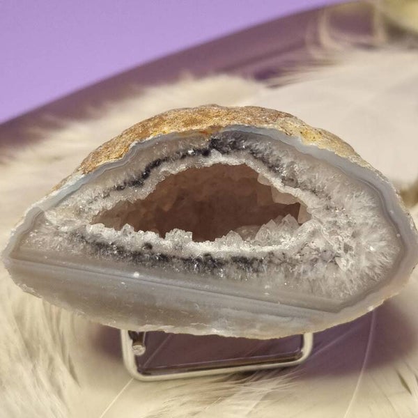 Van buiten oogt ze ruw en bescheiden, maar wie haar opent, ontdekt een wereld vol glans π. De agaat geode is ontstaan in vulkanisch gesteente, waar mineralen zich miljoenen jaren lang in lagen hebben gevormd, met een hart van fonkelende kwartskristallen. Elke laag vertelt een verhaal over tijd, vuur en stilte.