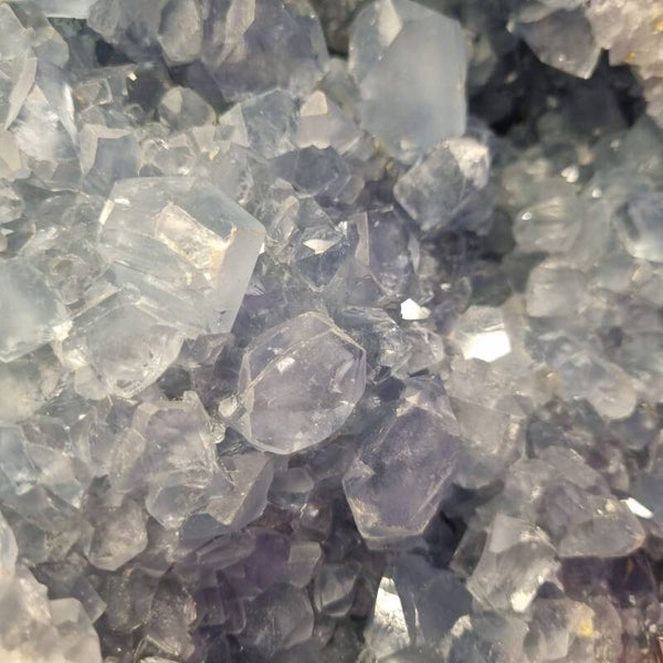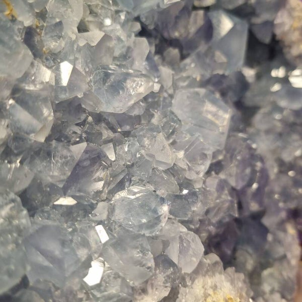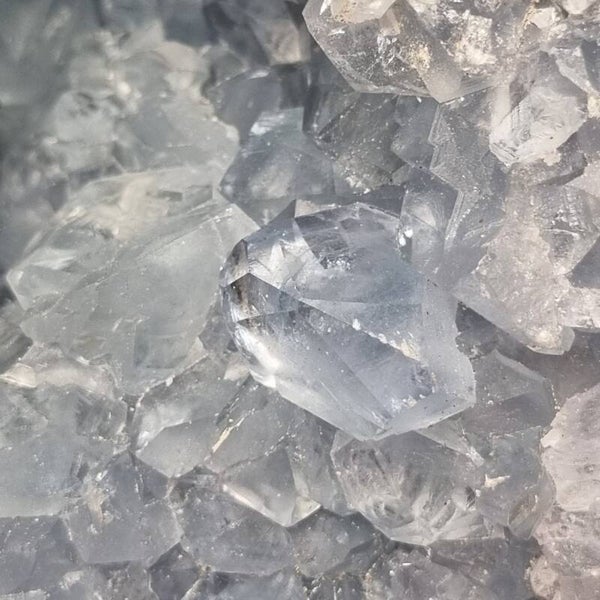 Deze prachtige celestien cluster straalt een serene energie uit, met kristallen in een kalme, hemelsblauwe kleur die doet denken aan de ochtendlucht na een droomrijke nacht ☁️💙.