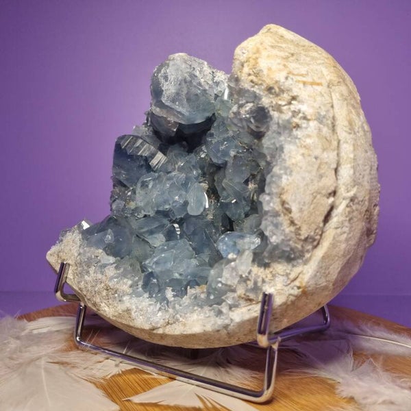 Celestien staat bekend om haar rustgevende werking en wordt vaak geassocieerd met engelenenergie en diepe innerlijke vrede. Het is een fijne begeleider bij meditatie, slaap en spirituele ontwikkeling – of simpelweg als energetisch rustpunt in je ruimte.