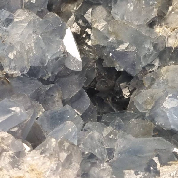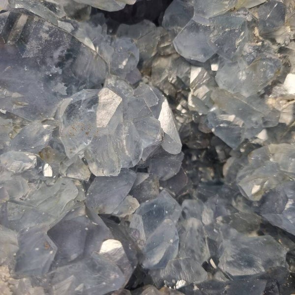 Deze prachtige celestien cluster straalt een serene energie uit, met kristallen in een kalme, hemelsblauwe kleur die doet denken aan de ochtendlucht na een droomrijke nacht ☁️💙.