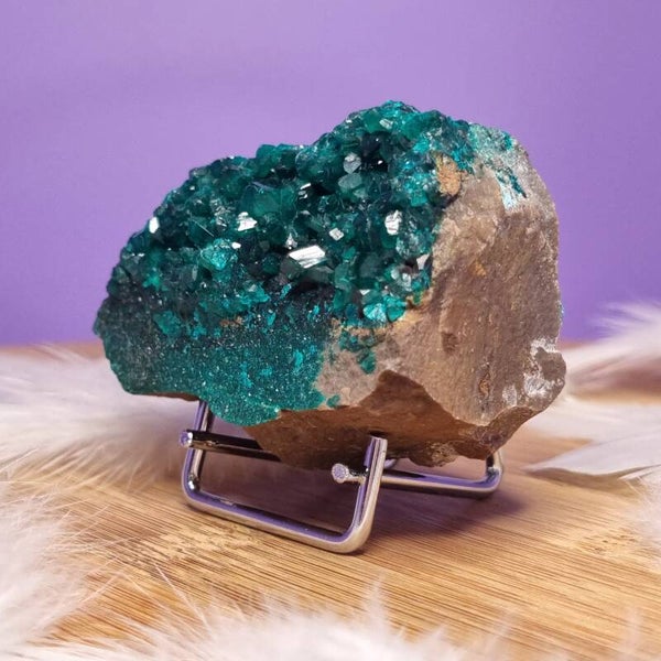 Laat je betoveren door de diepe, smaragdgroene gloed van Dioptaas — een zeldzaam mineraal dat al eeuwenlang harten verovert.