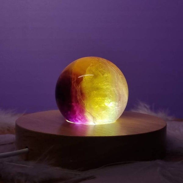 Een bolvorm verspreidt energie gelijkmatig in alle richtingen, waardoor de ruimte waarin je de fluoriet plaatst gevuld wordt met zachte, harmonieuze vibraties. Perfect voor op je bureau, slaapkamer of meditatieruimte.
