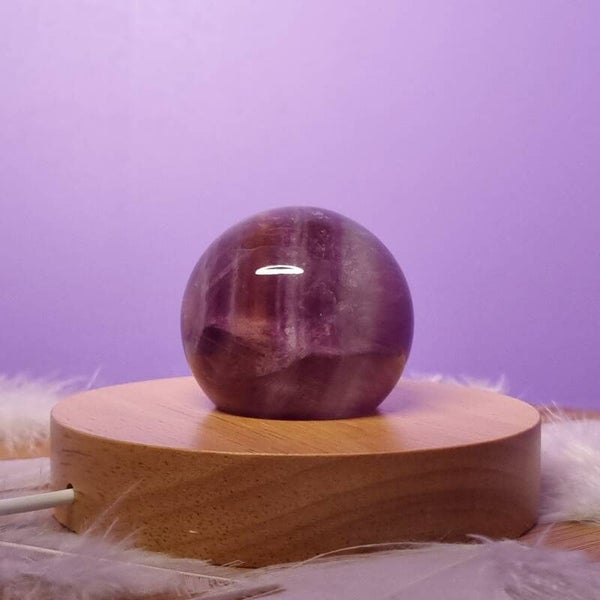 Een bolvorm verspreidt energie gelijkmatig in alle richtingen, waardoor de ruimte waarin je de fluoriet plaatst gevuld wordt met zachte, harmonieuze vibraties. Perfect voor op je bureau, slaapkamer of meditatieruimte.