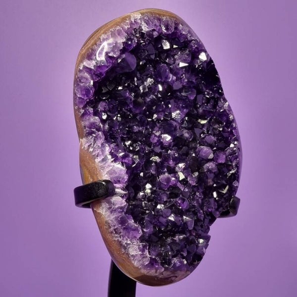 Amethist uit Uruguay behoort tot de mooiste ter wereld en staat bekend om haar diepe, zuivere paarse kleur. Deze edelsteen symboliseert innerlijke rust, bescherming en balans en wordt al eeuwenlang gewaardeerd als spirituele gids en kalmerende kracht.