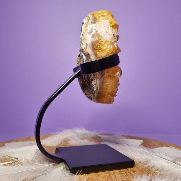 Gebrande Amethist uit Uruguay ontstaat wanneer diepe paarse amethist op natuurlijke of gecontroleerde wijze wordt verhit. Hierdoor krijgt de steen prachtige tinten van goudgeel tot oranje, die symbool staan voor warmte, energie en optimisme.