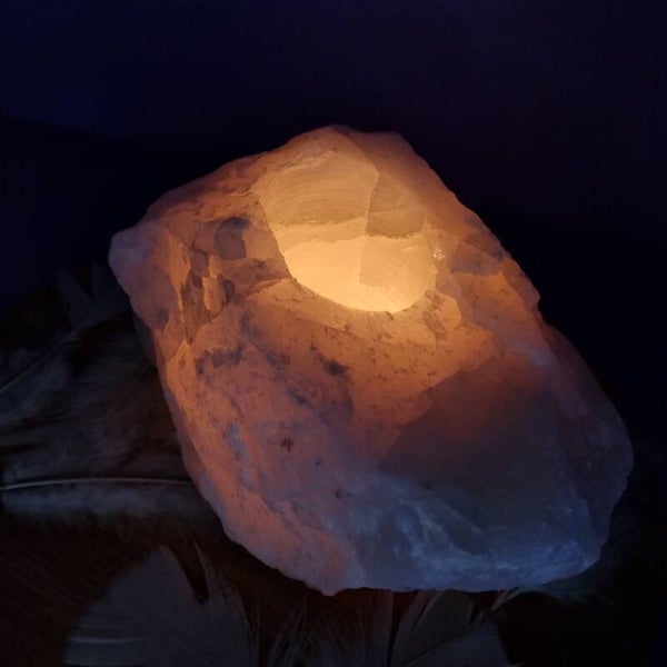 Breng licht, puurheid en harmonie in huis met een indrukwekkende bergkristal theelichthouder van wel 4 kilo. Deze robuuste sfeermaker is een uniek geschenk van de natuur, gevormd uit helderwitte kristallen die symbool staan voor zuiverheid en balans. Wanneer je een kaarsje aansteekt, verspreidt het zachte licht zich door de kristallen en ontstaat er een serene, stralende gloed.