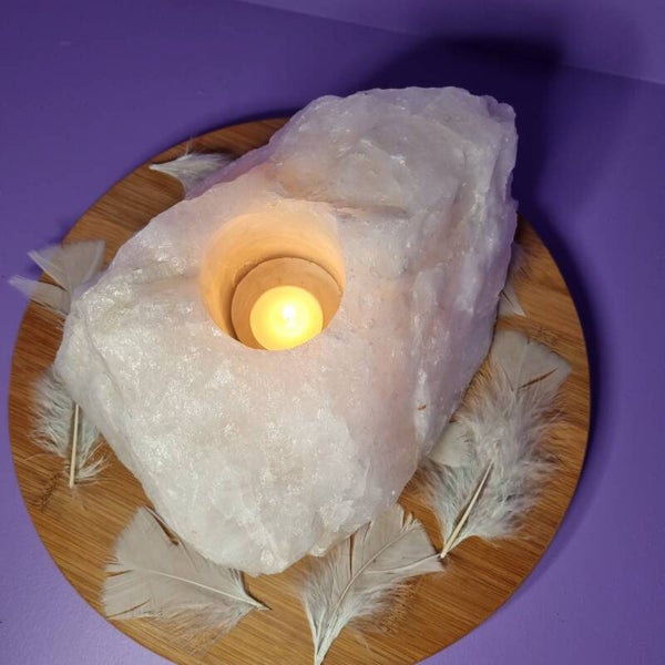 Breng licht, puurheid en harmonie in huis met een indrukwekkende bergkristal theelichthouder van wel 6 kilo. Deze robuuste sfeermaker is een uniek geschenk van de natuur, gevormd uit helderwitte kristallen die symbool staan voor zuiverheid en balans. Wanneer je een kaarsje aansteekt, verspreidt het zachte licht zich door de kristallen en ontstaat er een serene, stralende gloed.