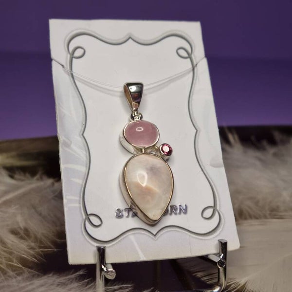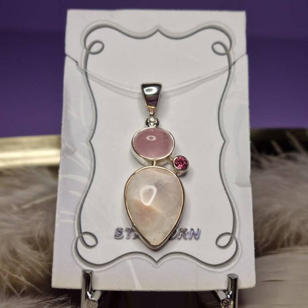 💎 Morganiet, Tourmalijn & Roze Natroliet Hanger – 925 Sterling Zilver
