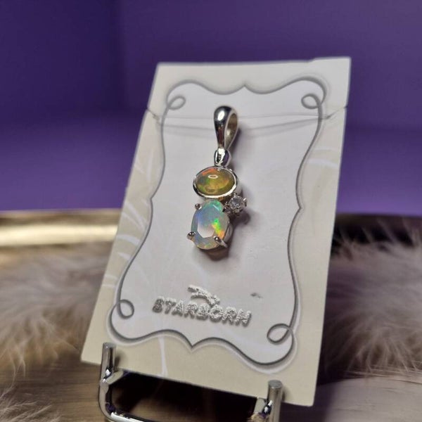 💎 Ethiopische Opaal & Witte Topaas Hanger – 925 Sterling Zilver