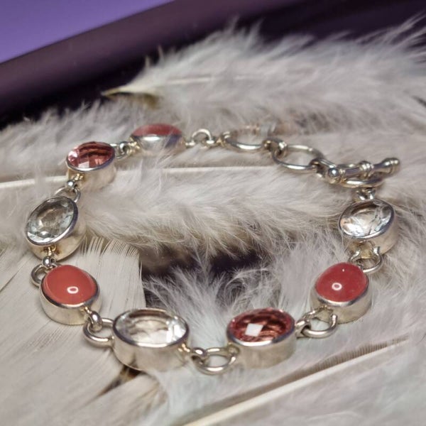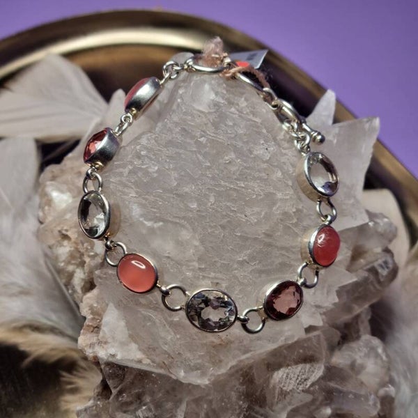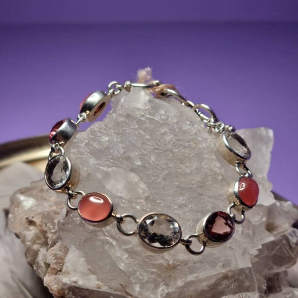 💎 Kwarts, Rozenkwarts & Rhodochrosiet Armband – 925 Sterling Zilver