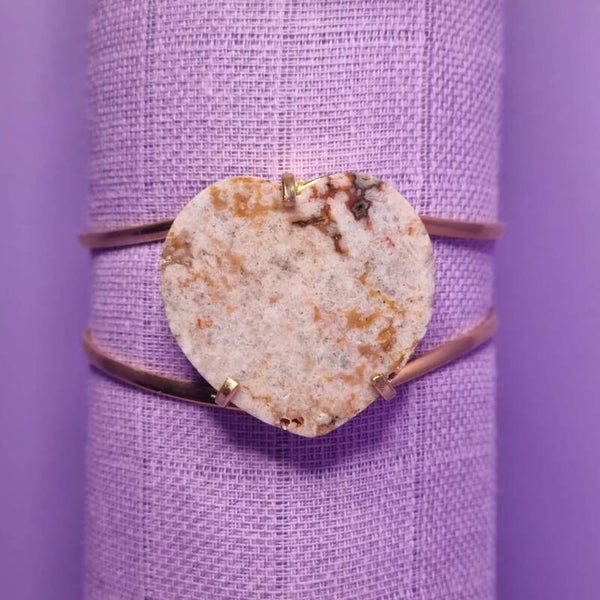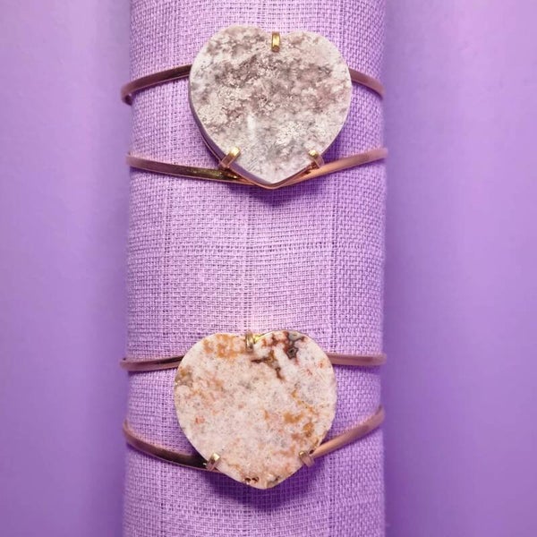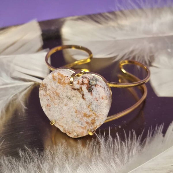 Deze unieke armband met een hartvormige steen herinnert je eraan om met mildheid naar jezelf te kijken en liefde in al haar vormen toe te laten.
