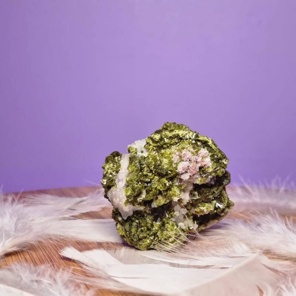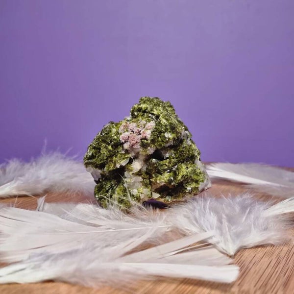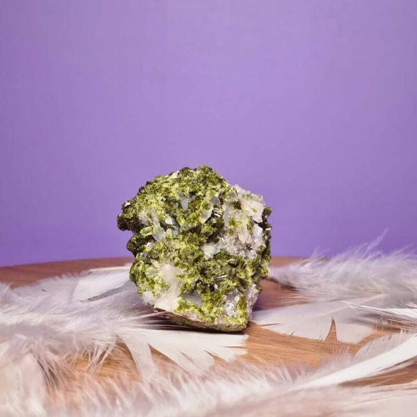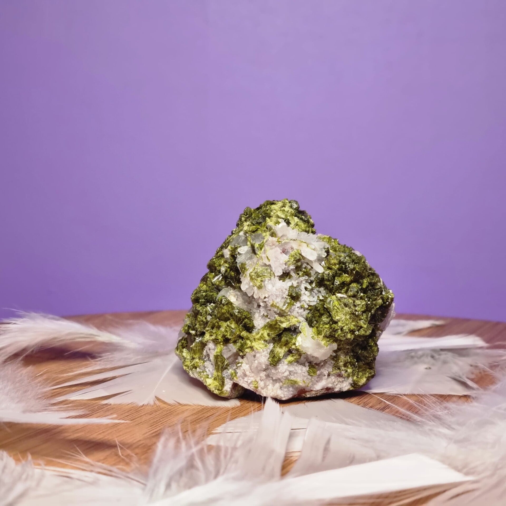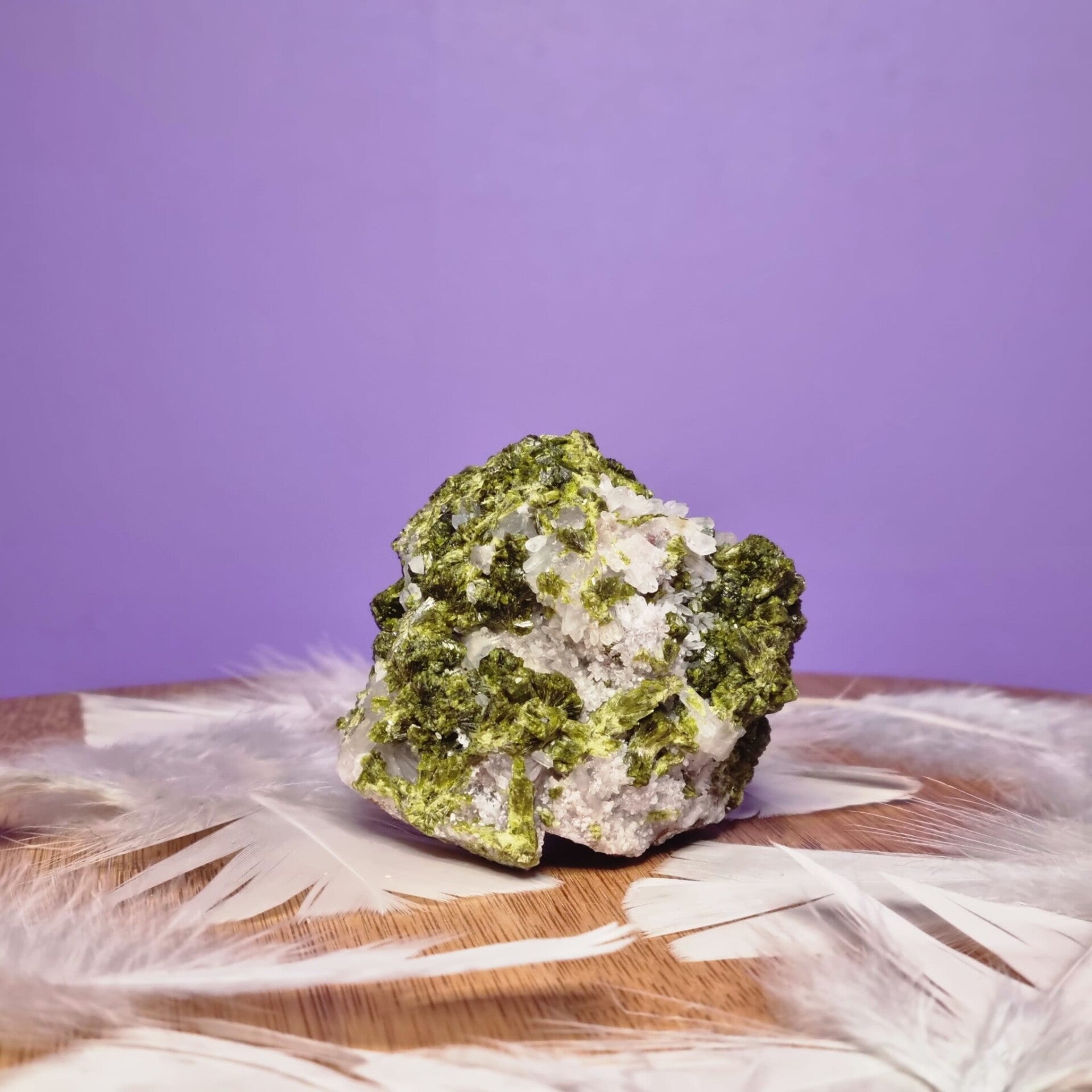 De frisse groene epidoot, omlijst door het heldere licht van kwarts, voelt als een wandeling door een kalm, eeuwenoud bergbos 🌿✨. Het is een schitterende aanvulling op je kristalcollectie, maar ook een krachtige begeleider tijdens meditatie.
