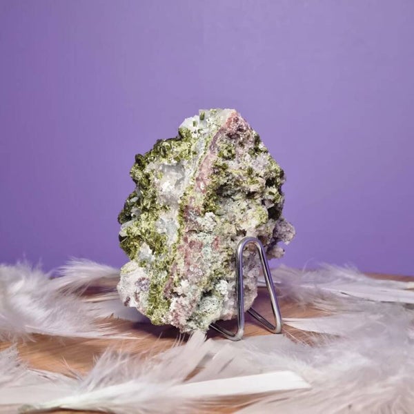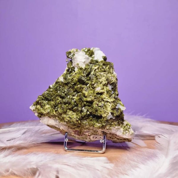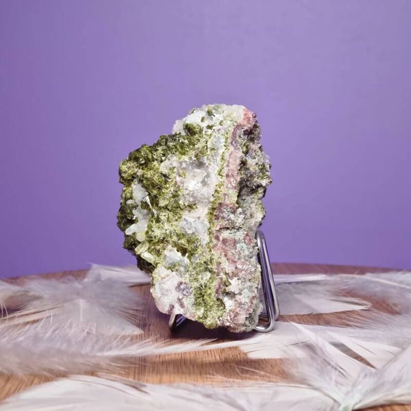 De frisse groene epidoot, omlijst door het heldere licht van kwarts, voelt als een wandeling door een kalm, eeuwenoud bergbos 🌿✨. Het is een schitterende aanvulling op je kristalcollectie, maar ook een krachtige begeleider tijdens meditatie.